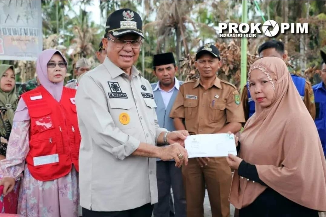 Bupati Inhil Serahkan Bantuan Untuk Korban Kebakaran di Desa Pebenaan