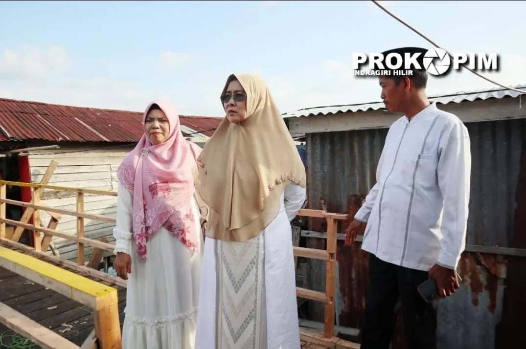 KILASRIAU.COM - Bupati Kabupaten Indragiri Hilir Drs. HM. Wardan MP didampingi Ketua TP-PKK, Hj. Zulaikhah Wardan, Sekcam Tembilahan Hulu, Lurah Tembilahan Hulu beserta Ketua Baznas Inhil meninjau pembangunan jalan jerambah yang terletak di lorong surau, Tembilahan Hulu, Rabu (19/07/2023).