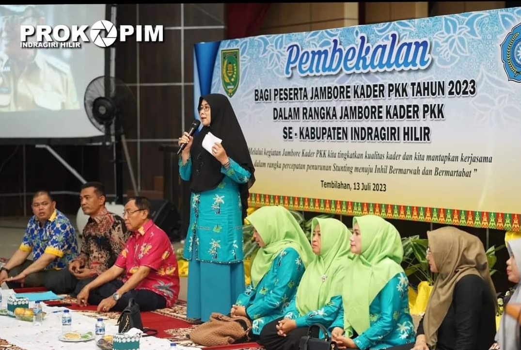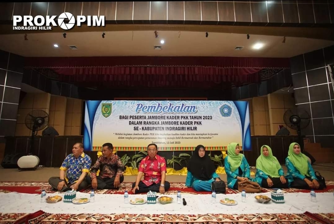 Kegiatan ini juga diisi dengan pembekalan bagi peserta jambore kader PKK oleh Kadis PMD H. Dwi Budiyanto dengan materi peran Dinas PMD memperkuat 10 program pokok PKK di Inhil.