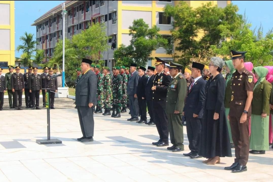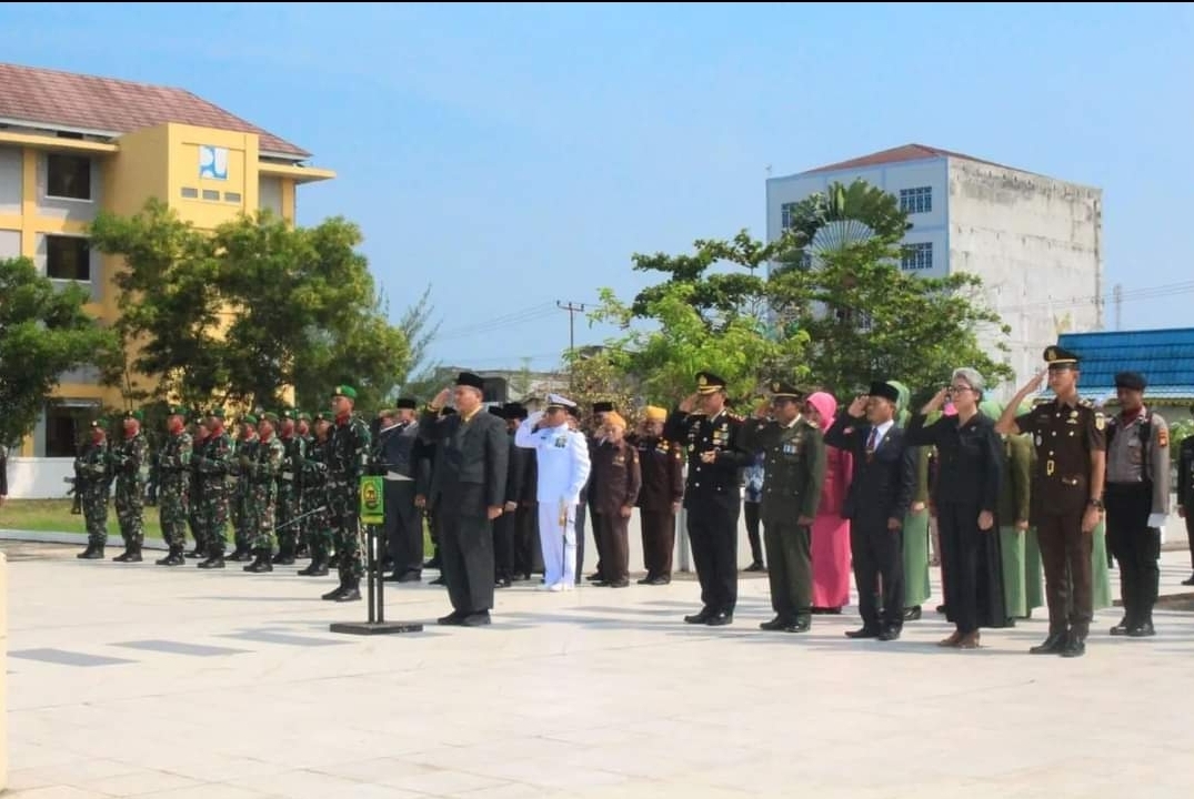 KILASRIAU.com - Dalam rangka memperingati Hari Pahlawan ke-78 Tahun 2023, Sekretaris Daerah (Sekda) Kabupaten Indragiri Hilir, Afrizal, bersama Forum Koordinasi Pimpinan Daerah (Forkopimda) mengikuti Upacara Ziarah Peringatan Hari Pahlawan ke-78 Tahun 2023 di Taman Makam Pahlawan Yudha Bhakti Tembilahan, Jumat, (10/11/2023).