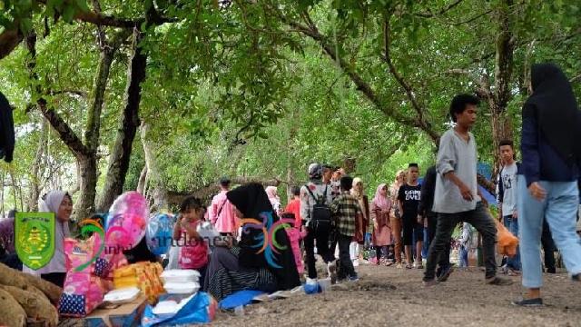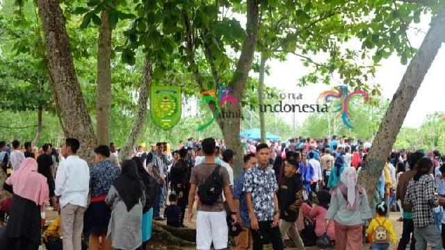 Suasana pengunjung yang memadati pantai solop kabupaten Inhil
