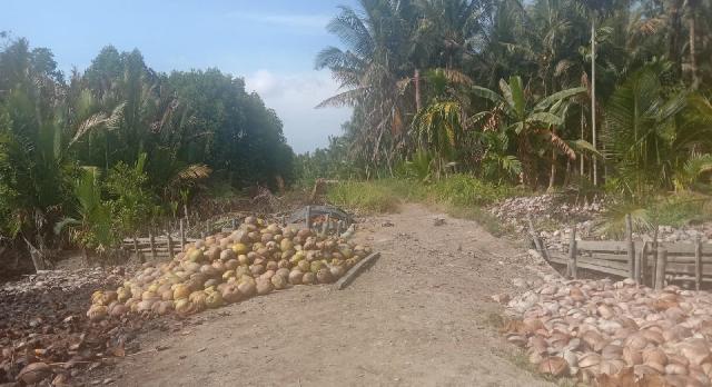 KILASRIAU.COM, INDRAGIRI HILIR - Potret perkebunan kelapa masyarakat Kabupaten Indragiri Hilir (Inhil) di wilayah Kecamatan Tanah Merah.