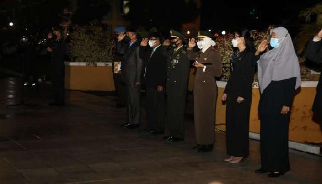 Apel kehormatan ditandai dengan mengheningkan cipta, penghormatan kepada para pahlawan dan penyalaan obor yang dipimpin oleh Kapolres Inhil yang disaksikan langsung oleh Wakil Ketua DPRD Inhil.