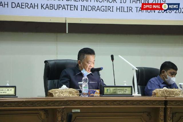 Rapat Paripurna ini adalah mengenai Rancangan Peraturan Daerah (Ranperda) Kabupaten Inhil tentang perubahan Peraturan Daerah (Perda) Nomor 10 Tahun 2019 Tentang Rencana Pembangunan Jangka Menengah Daerah (RPJMD) Kabupaten Inhil Tahun 2018-2023.