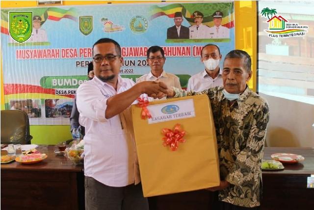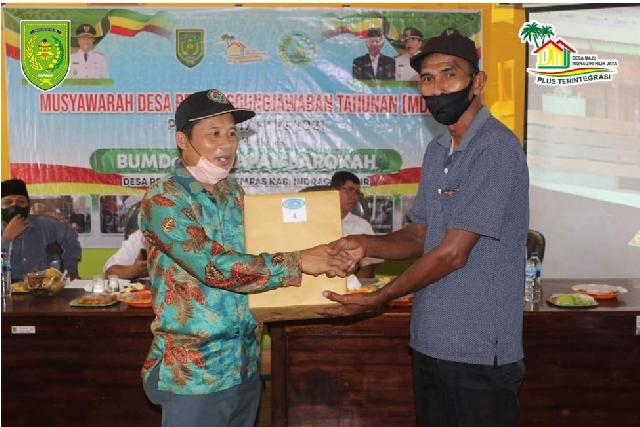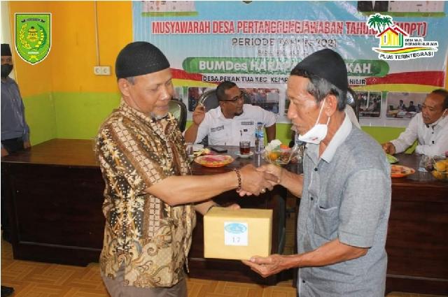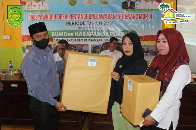 KILASRIAU.com - Badan Usaha Milik Desa (BUMDes) Harapan Barokah desa Pekan Tua kecamatan Kempas kabupaten Indragiri Hilir melaksanakan Musyawarah Desa Laporan Pertanggungjawaban Tahunan(MDPT) Tahun Buku 2021, Rabu (16/3/22)
