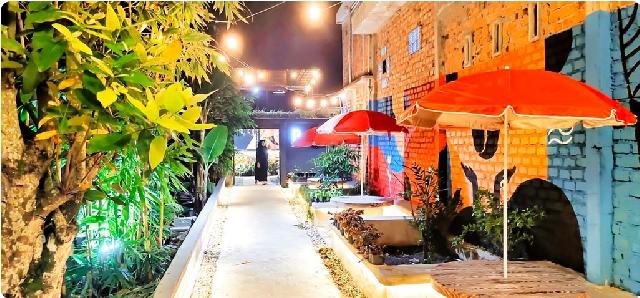 Di caffe ini menyajikan berbagai macam makan, minuman serta banyak spot foto dan hiburan juga kemudian terdengar 2 lantai ada lesehan dan tempat sholatnya.