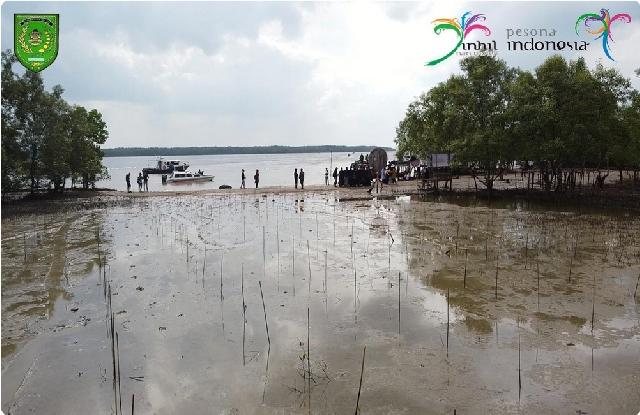 Ditempat ini juga terdampar luas lumpur yang sudah ditanami bibit Mangrove, kemudian terhampar hutan bakau.
