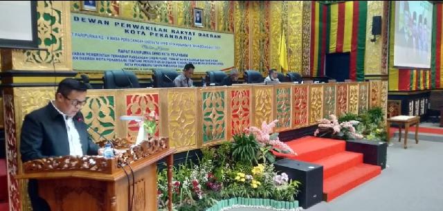 Sekdako Pekanbaru, HM Jamil membacakan pidato Pj Wali Kota Pekanbaru tentang Jawaban Pemerintah Terhadap Pandangan Fraksi DPRD Pekanbaru.