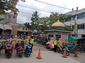 Polwan Berhijab Ini Jaga Kendaraan Jama'ah Shalat Jum'at di Masjid
