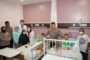 PEKANBARU - Kapolda Riau, Irjen Pol Mohammad Iqbal, membezuk dua bocah penderita kelainan tulang di Rumah Sakit Awal Bro.
