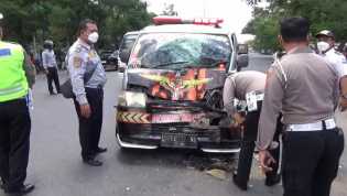 Kilasriau.com - Mobil ambulans yang membawa jenazah di Madiun menabrak bus yang akan keluar Terminal Purbaya, Ko.