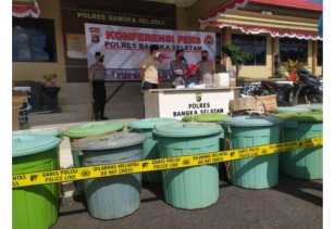 Polres Bangka Selatan Grebek Pabril Miras Rumahan Di Air Lingga, 1,9 Ton Arak Diamankan