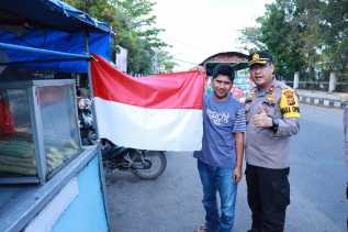 Polres Inhil Bagikan Bendera Merah Putih Kepada Warga Pengguna Jalan