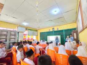 Tingkatkan Minat Baca Siswa SD/MI, Mahasiswa Kukerta Desa Pebaun Adakan Sosialisasi