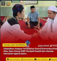 Disaksikan Kalapas Tembilahan Kanwil Kemenkumham Riau, Satu Orang WBP Menjadi Mualaf dan Mantap Memeluk Agama Islam