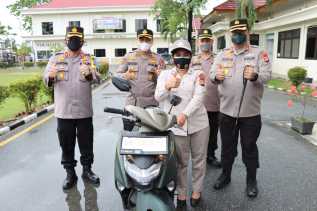 Bawa Masyarakat Agar di Vaksin Dalam Jumlah Banyak, Ibu ini Dapat Motor dari Kapolres Pelalawan