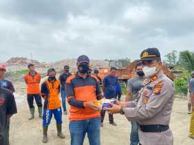Polres Inhil Bagikan Nasi Kotak Kepada Pemulung dan Petugas Kebersihan