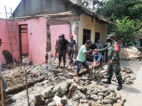 Babinsa Cikeusal Koramil 1507/ Luragung Bergotong-Royong Bangun Rumah Warga yang Rusak
