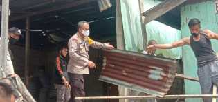 Polsek Batang Tuaka Bersama Warga Membersikan Puing-puing Karena Musibah Angin Puting Beliung