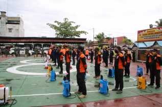 Hari Bhayangkara ke-74, Polres Inhil Bersama Frokopimda Laksanakan Penyemprotan Disinfektan