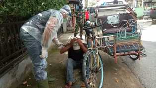 Saat Anggota Kodim Inhil Lakukan Penyemprotan Disinfektan, Ada Pria Tukang Becak Pingsan