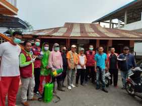 IWO dan Personel Polres Inhil, Melakukan Penyemprotan Disinfektan di Permukiman Warga