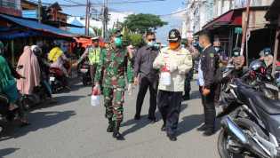 Kodim Inhil Bersama Tim Gabungan, Ormas, Organisasi serta Partai Politik Bagikan Cairan Disinfektan