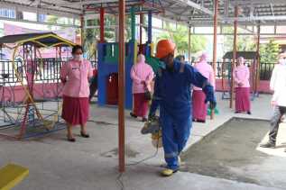 Antisipasi Corona, Polres Inhil Dan Tim Gabungan Semprot Dua Lokasi