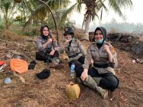 3 Srikandi Cantik Polres Inhil Ikut Padamkan Karhutla