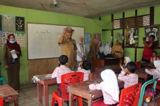 Marlis Sayrif Bagi 500 Masker ke SDN 009 Tembilahan Hulu
