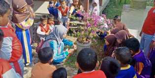KILASARIAU.com - Salah satu mahasiswa KKN Sungai Perak melaksanakan pelatihan cara Sambung Pucuk Bunga Bougenv.