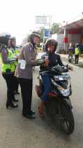 Kasatlantas Polres Inhil Bagi Coklat Dan bunga Untuk Msyarat Tertib Berlalulintas