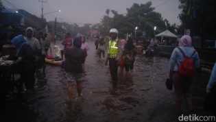 KILASRIAU.com - Sudah dua hari, akses utama Jalan Raya Dayeuhkolot-Banjaran terputus akibat banjir. Polis.