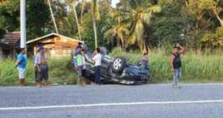 Bertabrakan dengan Toyota Rush, CRV Terbalik di Jalintim Pelalawan
