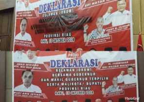 Tiba-tiba Sebagian Tulisan di Baliho Deklarasi Relawan Jokowi Riau di Pekanbaru Hilang
