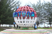 TNI AU Lanud RSA Natuna Gelar Karya Bakti Pengecatan Bola Dunia di Pantai Piwang