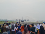 Tradisi Water Salute Sambut Pesawat C-130J Super Hercules TNI AU Saat Mendarat di Lanud RSA Natuna