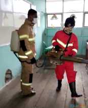 Antisipasi Penyebaran Ulat Bulu di SMPN 1 Concong, DPKP Inhil Lakukan Penyemprotan dan Fogging