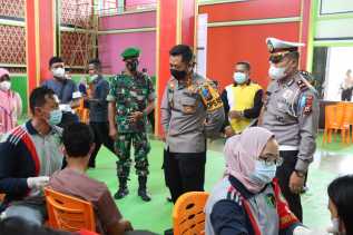 Kapolres Inhil Tinjau Kegiatan Vaksinasi di Gor Setia Bhakti Jalan Lintas Sungai Piring