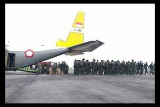 KILASRIAU.com - Sebanyak 1 SSK Pasukan ( 100 orang) dari Yonarmed 10 Kostrad telah tiba di bandara Pinang.