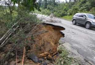 Waspada!! Jalan Nasional Lipatkain-Kebun Durian Ambrol