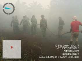 Koramil 12 dan Polsek Batang Tuaka Beserta Masyarakatnya Berupaya Padamkan Karhutla