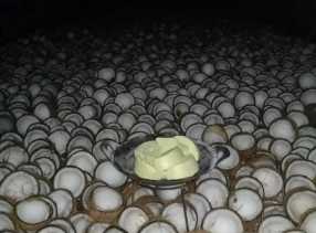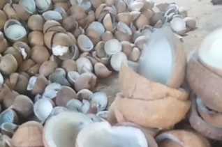 Tradisi Ibu-ibu Saat Memisahkan Isi Buah Kelapa Dari Kulitnya