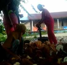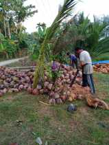 Tradisi Petani Kelapa di Inhil Saat Melakukan Pengupasan Buah Dengan Bergotong Royong