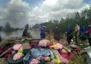 KILASRIAU.com - Puluhan bal pakaian bekas, ratusan kampit bawang putih dan bawang merah ilegal hasil tang.