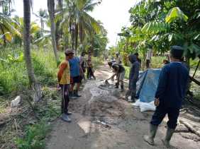 Sambut Bulan Suci Ramadhan, Pemdes dan Masyarakat Kuala Sebatu Goro Semenisasi Jalan