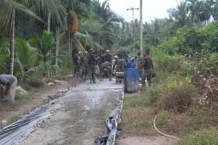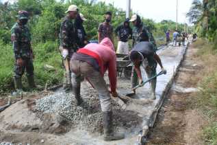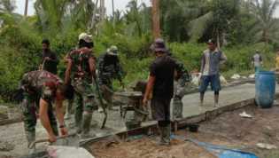 KILASRIAU.com - Dengan semangat gotong royong yang tinggi dari anggota Satgas TMMD.
