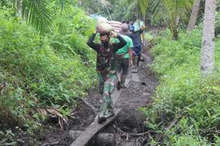 Satgas TMMD Bersama Masyarakat Kembali Melansir Bahan Material ke Lokasi Sasaran