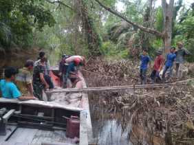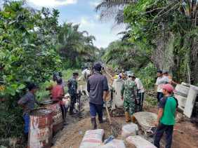 Anggota TNI Bersama Warga Teluk Kiambang Angkut Bahan Material TMMD