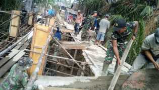 Satgas TMMD ke 106 Kodim 0314/Inhil Reteh Terus Maksimalkan Pembuatan Jembatan Beton